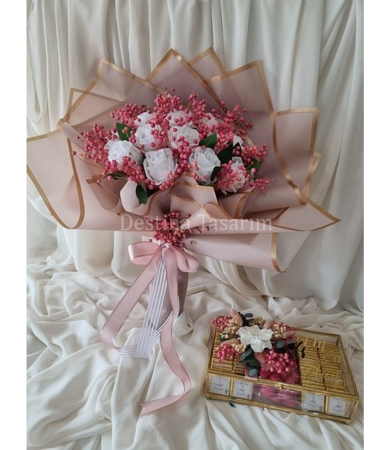 Pembe Kız İsteme Buketi ve Çikolata Seti